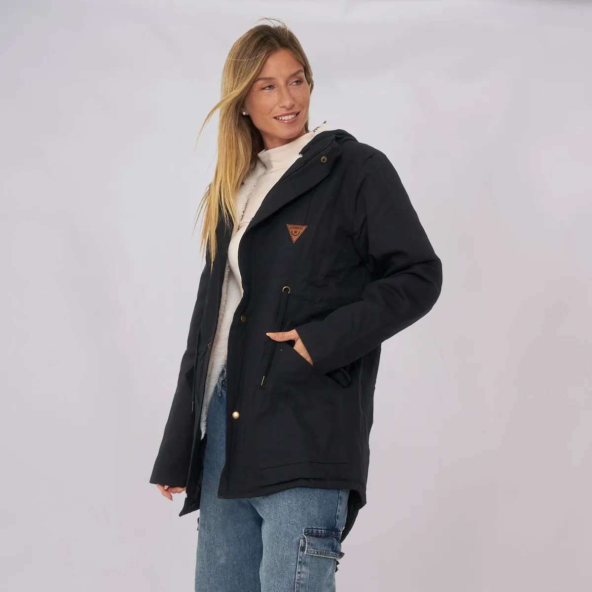 Nuestra PARKA PRAGA, esta confeccionada en gabardina verde/negro por fuera y en corderito sintético blanco por dentro, y viene con capucha. Trae tiras ajustables a la altura de la cintura, para hacerla más o menos entallada y su esplada cuenta con una terminación cola tiburon. En sus laterales inferiores trae bolsillos y un parche para poder customizarla!